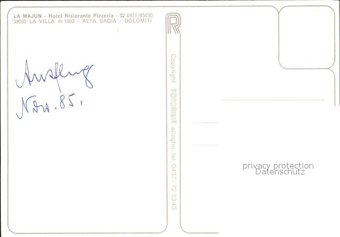 La Villa Val Badia Alta Badia La Majun Hotel Restaurant postalisch nicht gelaufen Erhaltung siehe scans