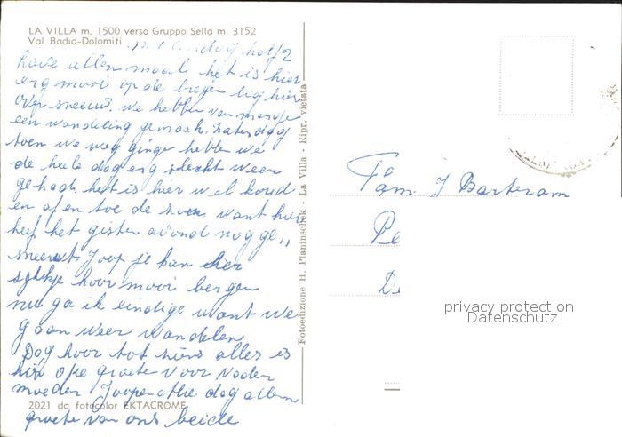 old postcard La Villa Val Badia verso Gruppo Sella Dolomiti Sellagruppe Dolomiten postalisch gelaufen Erhaltung siehe scans