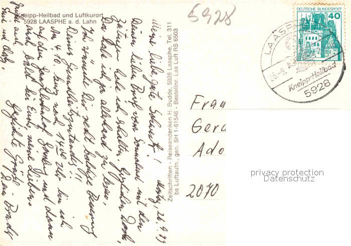 72849816 alte Postkarte Laasphe Bad Fliegeraufnahme postalisch gelaufen Erhaltung siehe scans [NatalD47] KatCode: 11110005970028