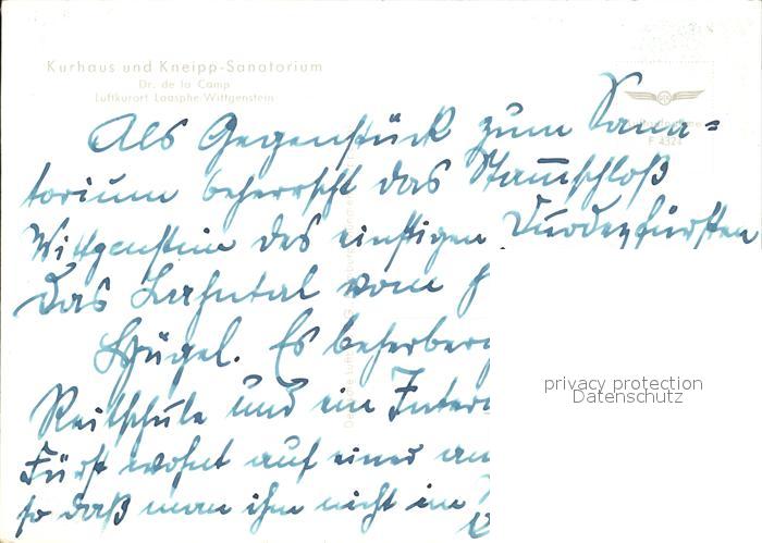 72544675 Laasphe Bad Kurhaus Dr. de la Camp postalisch nicht gelaufen Erhaltung siehe scans [NatalD47 kv014box] KatCode: 11110005970028
