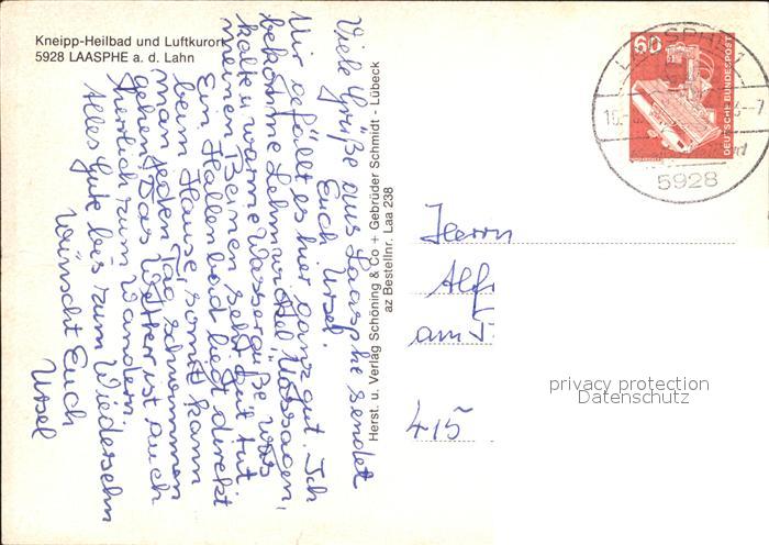 72279898 alte Postkarte Laasphe Bad Kurpark Kneipp Heilbad postalisch gelaufen Erhaltung siehe scans KatCode: 11110005970028