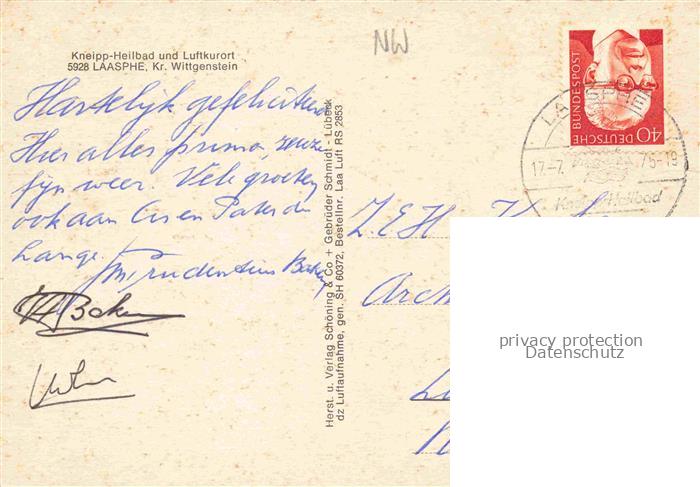 74110300 alte Postkarte Laasphe BAD LAASPHE NRW Fliegeraufnahme postalisch gelaufen Erhaltung siehe scans [WerneD78] KatCode: 11110005970028