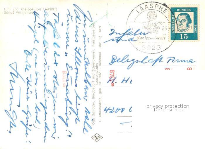 73168566 alte Postkarte Laasphe BAD LAASPHE NRW Fliegeraufnahme mit Schloss Wittgenstein postalisch gelaufen Erhaltung siehe scans [WerneD78] KatCode: 11110005970028