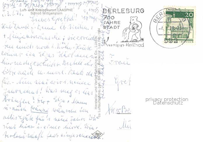 72892575 alte Postkarte Laasphe BAD LAASPHE NRW Fliegeraufnahme Schloss Wittgenstein postalisch gelaufen Erhaltung siehe scans [AndreD76] KatCode: 11110005970028