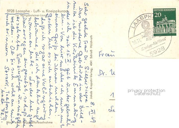 73767844 Laasphe BAD LAASPHE NRW Panorama Luft- und Kneippkurort im Wittgensteiner Land postalisch gelaufen Erhaltung siehe scans [FriedD77] alte Postkarte Frie Katcode 11110005970028