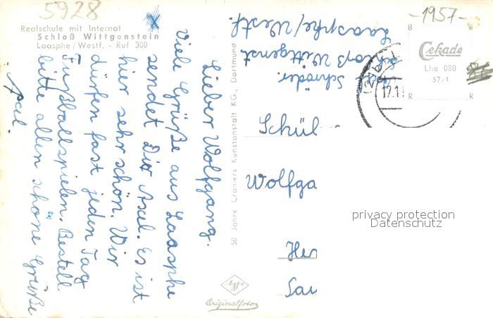 73709755 Laasphe BAD LAASPHE NRW Realschule mit Internat schloss Wittgenstein postalisch gelaufen Erhaltung siehe scans [LiesaD40] alte Postkarte Lies Katcode 11110005970028