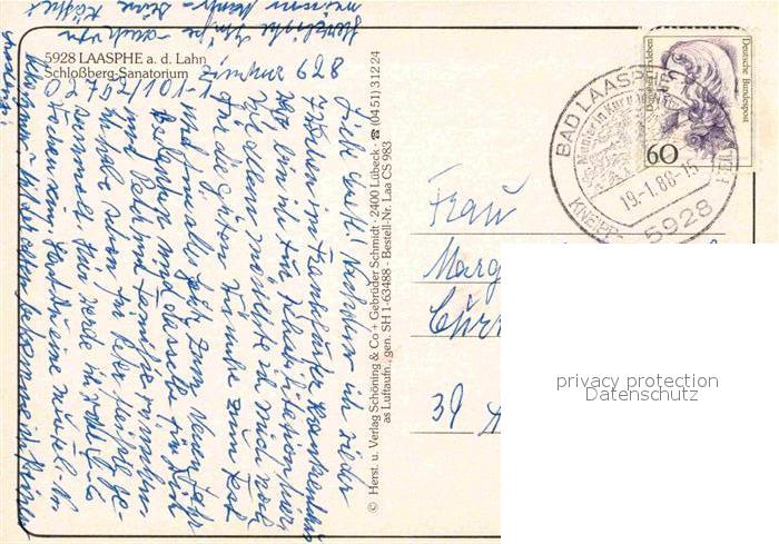 72837133 alte Postkarte Laasphe BAD LAASPHE NRW Schlossberg Sanatorium Fliegeraufnahme postalisch gelaufen Erhaltung siehe scans [FriedD77] KatCode: 11110005970028