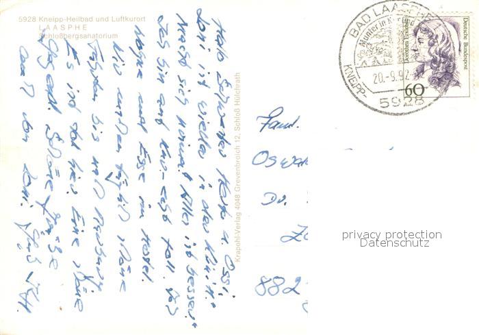 73740734 Laasphe BAD LAASPHE NRW Schlossbergsanatorium postalisch gelaufen Erhaltung siehe scans [FriedD77] alte Postkarte Frie Katcode 11110005970028