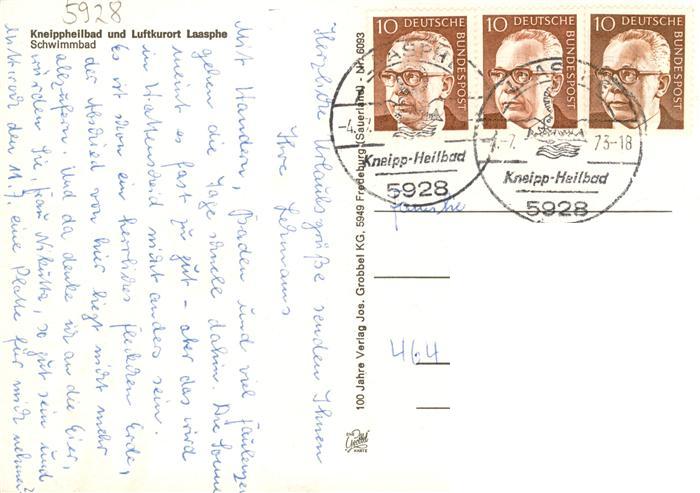 73891881 Laasphe BAD LAASPHE NRW Schwimmbad postalisch gelaufen Erhaltung siehe scans [WerneD78] alte Postkarte Wern Katcode 11110005970028