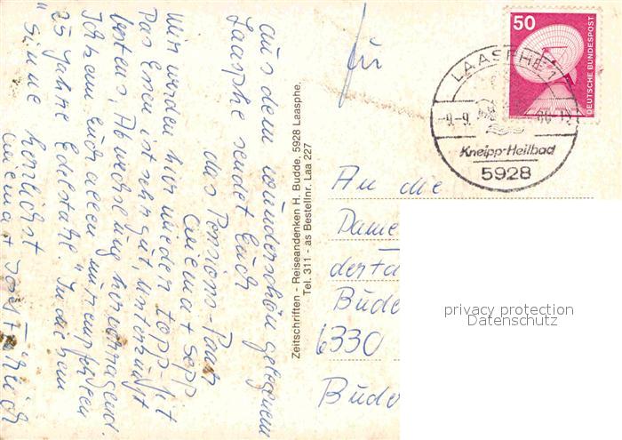 72827685 alte Postkarte Laasphe Bad Schloss Wittgenstein Schlossberg Sanatorium Waldhotelo Haferkiste postalisch gelaufen Erhaltung siehe scans [NatalD47] KatCode: 11110005970028