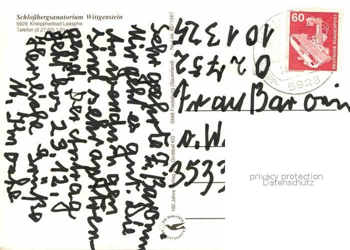 72655710 alte Postkarte Laasphe Bad Schlossbergsanatorium Wittgenstein postalisch gelaufen Erhaltung siehe scans [LiesaD40] KatCode: 11110005970028