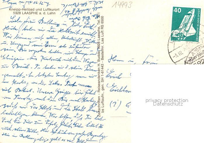 73540107 alte Postkarte Laasphe Fliegeraufnahme postalisch gelaufen Erhaltung siehe scans [WerneD78] KatCode: 11110005970028
