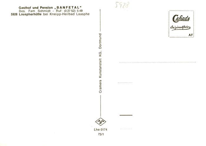 73869800 Laaspherhuette Bad Laasphe Gasthof Pension Banfetal Gastraum Fremdenzimmer Fischteiche postalisch nicht gelaufen Erhaltung siehe scans [FriedD77] KatCode: 11110005970028