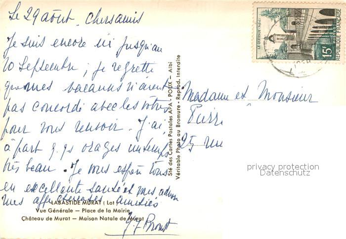 13662449 Labastide-Murat Vue generale Place de la Mairie Chateau de Murat Maison Natale de Morat postalisch gelaufen Erhaltung siehe scans [WerneD78] carte postale Wern Katcode 11170046346138