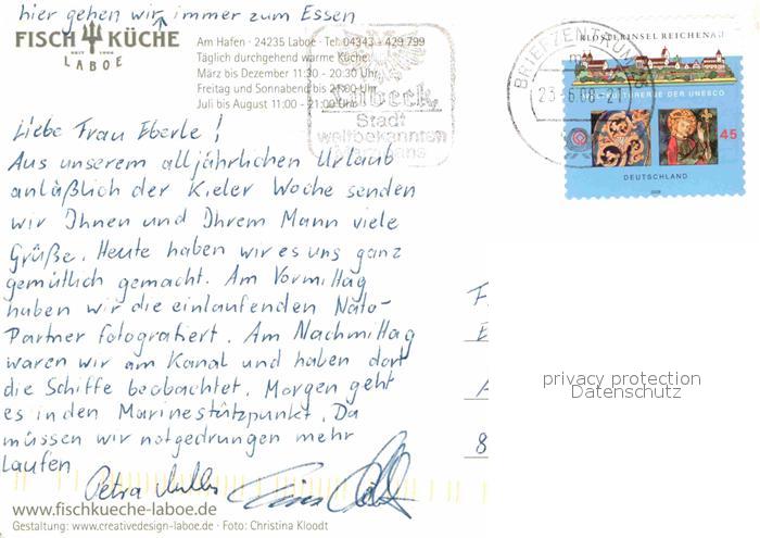 72782650 alte Postkarte Laboe Fischkueche Boote postalisch gelaufen Erhaltung siehe scans [LiesaD40] KatCode: 11110001057043
