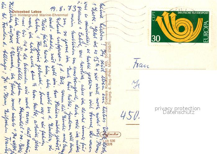73123181 alte Postkarte Laboe Fliegeraufnahme mit Hafen Strand Marine Ehrenmal postalisch gelaufen Erhaltung siehe scans [LiesaD40] KatCode: 11110001057043
