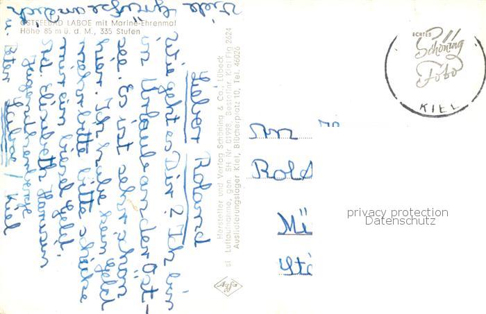 73833554 alte Postkarte Laboe Fliegeraufnahme mit Marine Ehrenmal postalisch gelaufen Erhaltung siehe scans [FriedD77] KatCode: 11110001057043
