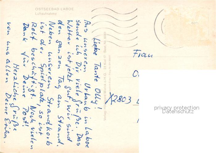 73741321 alte Postkarte Laboe Fliegeraufnahme mit Marine Ehrenmal postalisch gelaufen Erhaltung siehe scans [FriedD77] KatCode: 11110001057043