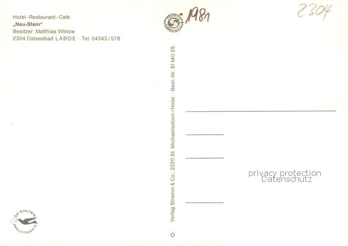 73751431 Laboe Hotel Restaurant Cafe Neu-Stein Gastraeume Gartenterrasse postalisch nicht gelaufen Erhaltung siehe scans [WerneD78] KatCode: 11110001057043