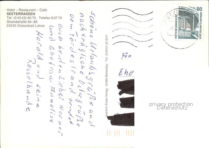 72470715 alte Postkarte Laboe Hotel Restaurant Cafe Seeterrassen Marine Ehrenmal postalisch gelaufen Erhaltung siehe scans KatCode: 11110001057043