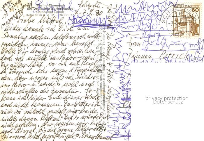 72983366 alte Postkarte Laboe Marine Ehrenmal Ostseebad Fliegeraufnahme postalisch gelaufen Erhaltung siehe scans [FriedD77] KatCode: 11110001057043