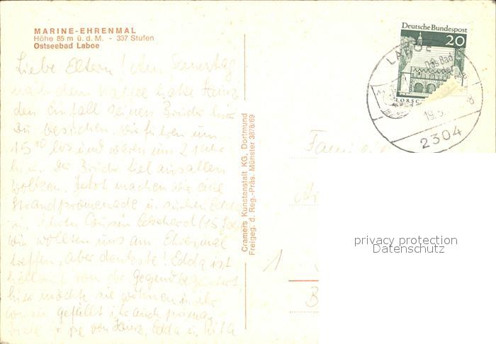 72156847 alte Postkarte Laboe Marine Ehrenmal Ostseebad Fliegeraufnahme postalisch gelaufen Erhaltung siehe scans KatCode: 11110001057043