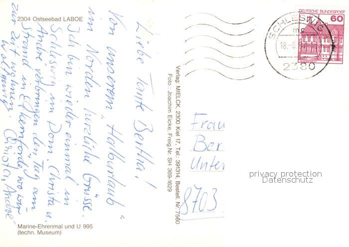 73011175 alte Postkarte Laboe Marine Ehrenmal und U995 postalisch gelaufen Erhaltung siehe scans [WerneD78] KatCode: 11110001057043