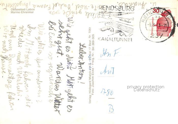 73152620 alte Postkarte Laboe Ostseebad Marine Ehrenmal Faehre Fliegeraufnahme postalisch gelaufen Erhaltung siehe scans [FriedD77] KatCode: 11110001057043
