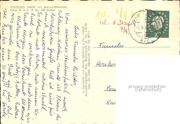 71899971 alte Postkarte Laboe Ostseebad Marine Ehrenmal Fliegeraufnahme postalisch gelaufen Erhaltung siehe scans KatCode: 11110001057043