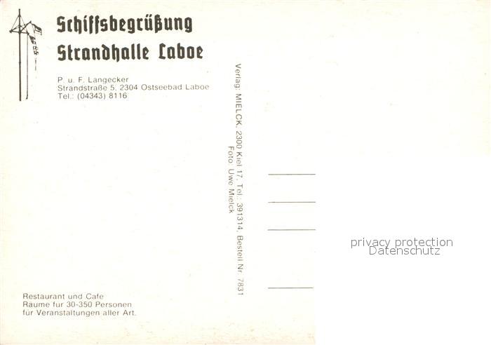 73070352 Laboe Schiffsbegruessung Strandhalle Laboe postalisch nicht gelaufen Erhaltung siehe scans [WerneD78] KatCode: 11110001057043