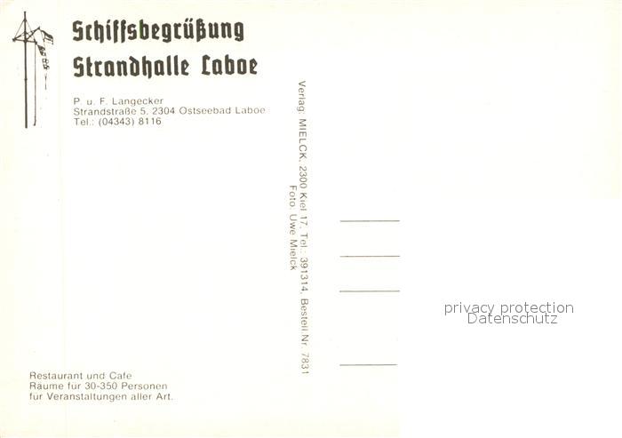 73070402 Laboe Schiffsbegruessung Strandhalle Laboe postalisch nicht gelaufen Erhaltung siehe scans [WerneD78] KatCode: 11110001057043