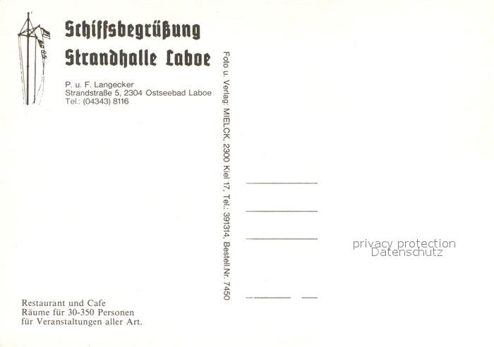 73042291 Laboe Schiffsbegruessung Strandhalle postalisch nicht gelaufen Erhaltung siehe scans [NatalD47] KatCode: 11110001057043