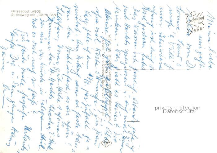 73241324 Laboe Strandweg Gorch Fock postalisch nicht gelaufen Erhaltung siehe scans [KathaD81] KatCode: 11110001057043