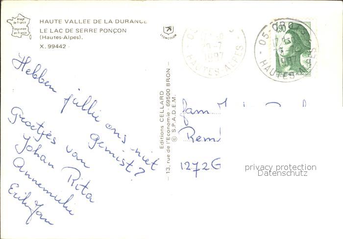 12920917 carte postale Lac de Serre Poncon Haute Vallee de la Durance postalisch gelaufen Erhaltung siehe scans [FriedD46] KatCode: 11170005205166