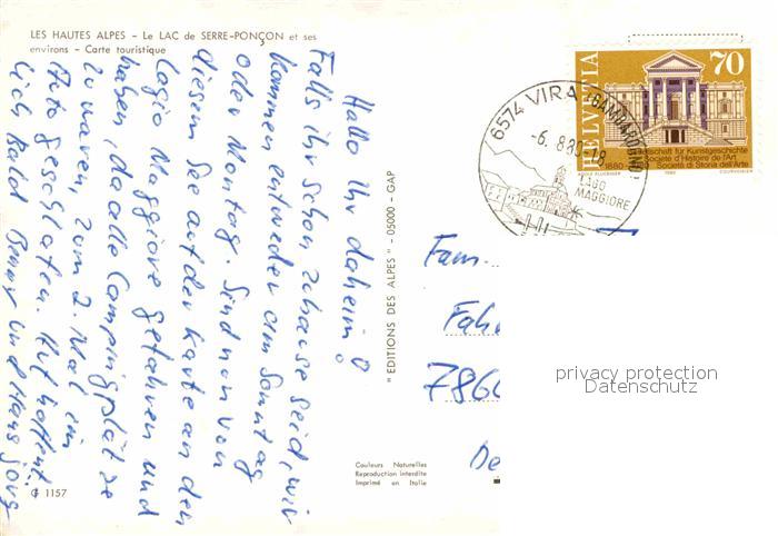 12861799 carte postale Lac de Serre Poncon Landkarte Panorama Talsperre postalisch gelaufen Erhaltung siehe scans [AndreD76] KatCode: 11170005205166