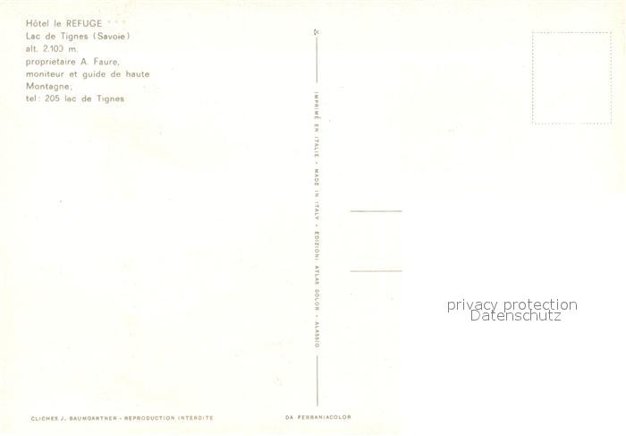 13235790 Lac de Tignes Hotel du Refuge Wintersportplatz Franzoesische Alpen postalisch nicht gelaufen Erhaltung siehe scans [FriedD77] KatCode: 11170073173296