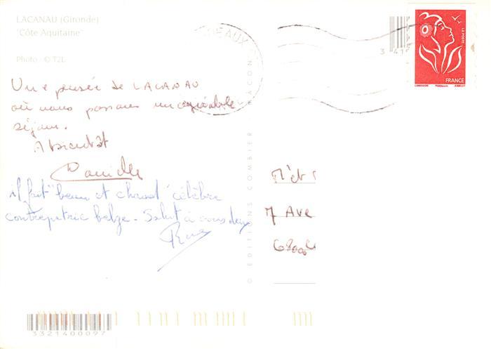 13947956 Lacanau 33 Gironde Kuestenpanorama Luftaufnahme Surfen Waldpartie postalisch gelaufen Erhaltung siehe scans [FriedD77] carte postale Frie Katcode 11170033233214
