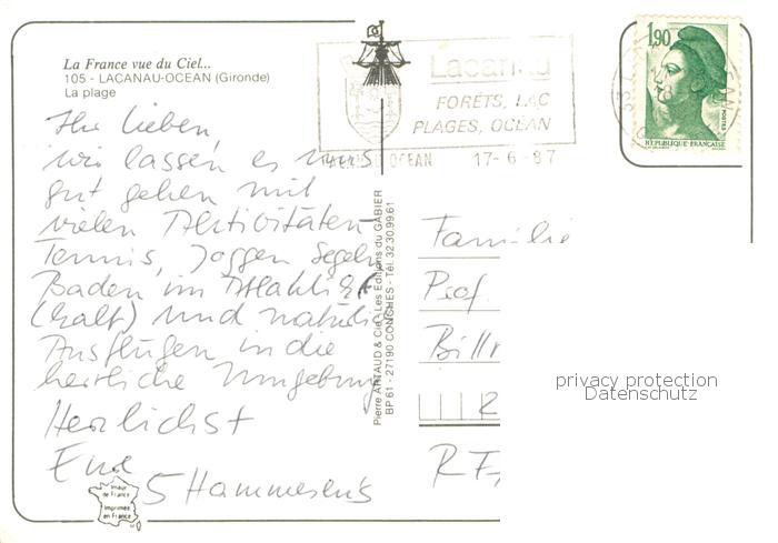 13784209 Lacanau 33 La plage Vue aerienne postalisch gelaufen Erhaltung siehe scans [WerneD78] carte postale Wern Katcode 11170033233214