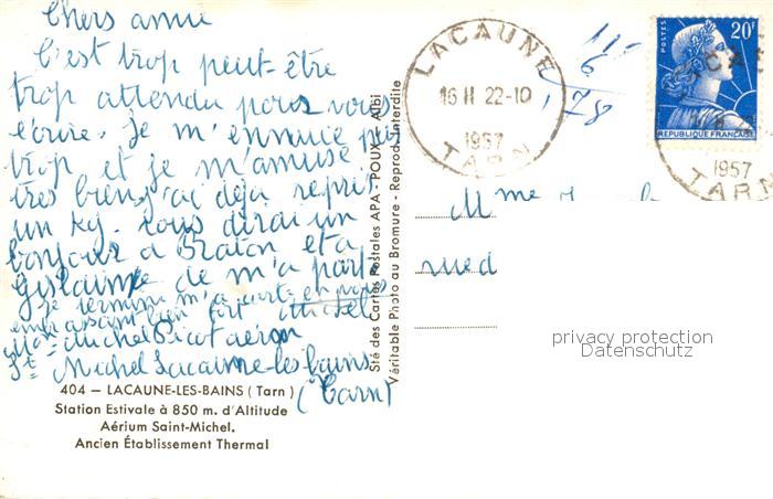 13577351 carte postale Lacaune les Bains Station Estivale Aerium Saint Michel Ancien Etablissement Thermal postalisch gelaufen Erhaltung siehe scans [WerneD78] KatCode: 11170081281124