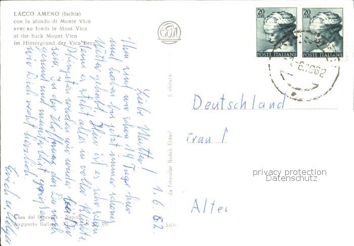 old postcard Lacco Ameno con la sfondo di Monte Vico postalisch gelaufen Erhaltung siehe scans