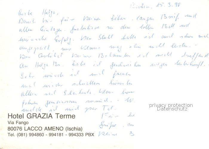 Lacco Ameno Hotel Grazia Terme Via Fango postalisch nicht gelaufen Erhaltung siehe scans [WerneD78]