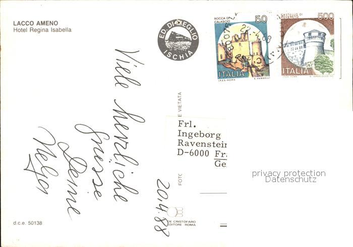 old postcard Lacco Ameno Hotel Regina Isabella postalisch gelaufen Erhaltung siehe scans