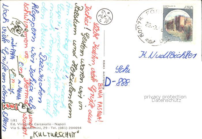 old postcard Lacco Ameno Panorama Teilansicht Hafen Felsen postalisch gelaufen Erhaltung siehe scans