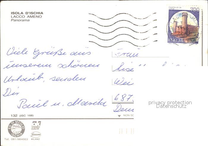 old postcard Lacco Ameno Teilansicht mit Hafen postalisch gelaufen Erhaltung siehe scans