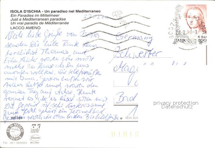 old postcard Lacco Ameno Uferpromenade Hafen postalisch gelaufen Erhaltung siehe scans