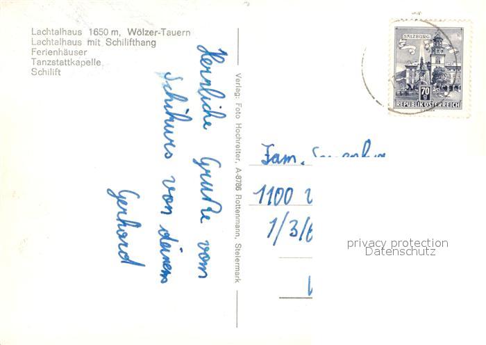 72949429 alte Postkarte Lachtalhaus Woelzer Tauern Schilifthang Ferienhaeuser postalisch gelaufen Erhaltung siehe scans [NatalD47] KatCode: 11390226061429
