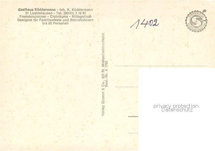 73660990 Lachtehausen Gasthaus Koeddermann Restaurant postalisch nicht gelaufen Erhaltung siehe scans [FriedD77] KatCode: 11110003351006
