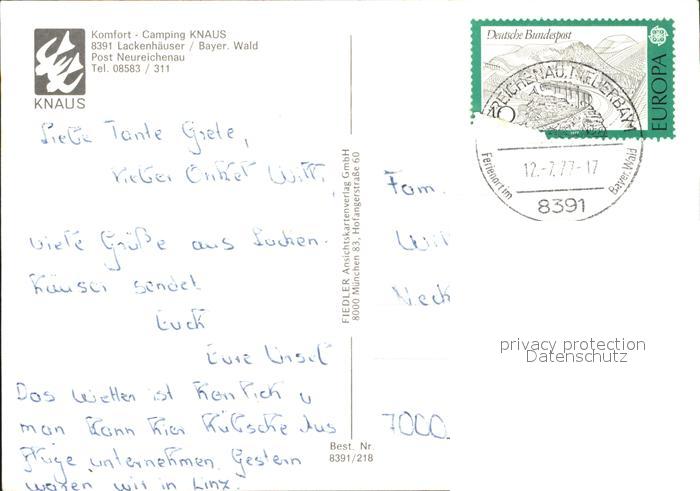 71938808 alte Postkarte Lackenhaeuser Niederbayern Ferienzentrum Camping Wappen postalisch gelaufen Erhaltung siehe scans KatCode: 11110009272136