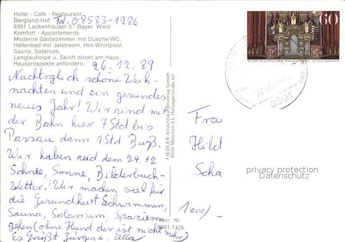 72496902 alte Postkarte Lackenhaeuser Niederbayern Hotel Cafe Restaurant Bergland Hof Hallenbad Langlauf Winterlandschaft postalisch gelaufen Erhaltung siehe scans KatCode: 11110009272136