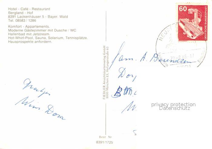 72661228 alte Postkarte Lackenhaeuser Niederbayern Hotel Restaurant Bergland Hof Gastraum Hallenbad postalisch gelaufen Erhaltung siehe scans [WerneD78] KatCode: 11110009272136